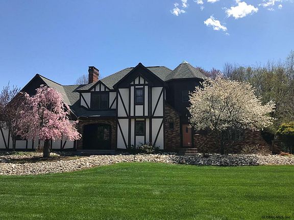 Custom, Traditional, Elegance perfectly describes this Stunning Tudor in desirable Upscale Sunset Hills Neighborhood. Featuring 4 bedrooms, 3 updated bathrooms, Remodeled kitchen with beautiful counters and eat in area, 1st floor laundry room, Stunning hardwood floors and new carpet. Family Room with fireplace to entertain, Formal living and dinning room adds to the charm. Master suite has storybook cathedral ceiling sitting area, Open area upstairs would make a perfect playroom, office, etc. Finished Basement with theater area and plenty of storage. Private and tranquil 1 acre lot with lush gardening and stone pavers through out. Award Wining East Greenbush schools. Minutes to parks, schools, Restaurants, YMCA, Albany. Easy access to I90 & 787