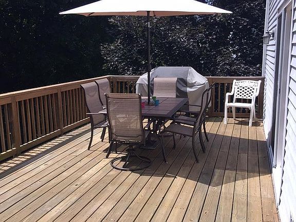 Winchester built four bedroom colonial with partially finished basement on large private lot, with large deck and lower brick patio backing to woods. New windows and doors installed in 2010. All stainless steel appliances. Open floor plan between kitchen and family room. Natural gas heat and water heater.