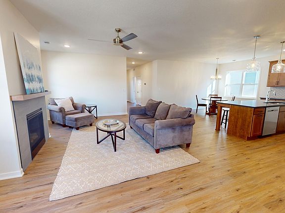 Welcome to your contemporary haven: a pristine 2-bed, 2-bath home spanning 1611 sq ft. Revel in the seamless flow of the open floor plan, accentuated by a generous 5' hallway and a sprawling center island adorned with granite surfaces. Ample storage ensures clutter-free living. Step outside to unwind on your back patio, knowing the HOA covers snow, lawn, and sanitation. This new construction slab-on-grade residence offers a perfect blend of functionality and luxury. Embrace the convenience of modern living while relishing the tranquility of a well-maintained community. Your ideal sanctuary awaits in this thoughtfully designed, maintenance-free retreat.