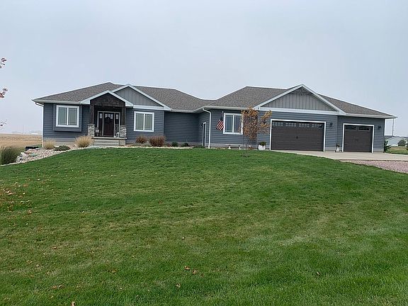 Beautiful 3400+ Square foot home just 15 minutes east of Sioux Falls on a spacious 1 acre lot that features open floor plan and oversized, heated 3 stall garage. This home has 5 bedrooms (3 up, 2 down) and 3 1/2 baths. The open concept living room, dining room, and kitchen features large west facing windows to enjoy beautiful countryside sunsets. This area also features vaulted ceilings, a fully custom kitchen with granite countertops, large island, snd adjacent covered porch. The master suite includes tray ceilings, walk in closet, and large master bath with claw foot tub, walk in tile shower, and dual sinks. The 2 other bedrooms on this level include window seating and a cozy feel with a bathroom between. Finishing off the main floor is the laundry room, mud room with locker system, and 1/2 bath. The finished lower level features large garden view windows, custom mill work, wet bar, electric fire place, and heated floors. The area is spacious and was designed for fun and entertaining guests. 2 bedrooms and 1 bath finish off the lower level space. This property has had 1 owner and is located in a great neighborhood just outside of Larchwood, IA within the West Lyon School district. Come check out this one of a kind home with great open spaces and wonderful custom features!