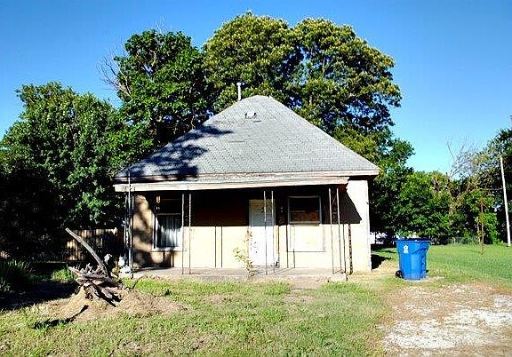 Bungalow style that needs a good cleaning and paint. The hardwood floors can be re-finished and look really good. 2-bedrooms and a living room and dining room. The single car metal garage has an overhead door and concrete floor, with its own electric panel. Small shed-type storage building. The large lot with chain link fence and privacy fence has room for expansion to meet your needs. It extends north to Railroad Street.