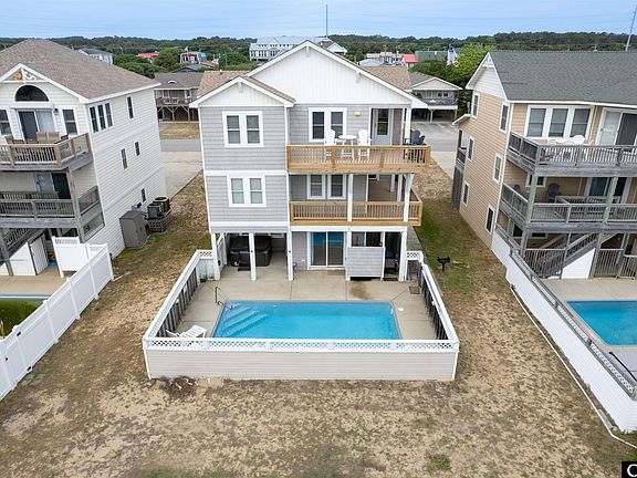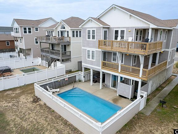 EASY BEACH ACCESS WITH OCEAN VIEWS. This well-maintained 4-bedroom, 5.5-bath coastal cottage offers the perfect blend of comfort, privacy and vacation-ready amenities. Located just three rows back from the beach on a quiet, desirable street, this solidly built home is designed for relaxation and entertainment. Inside, discover a spacious and thoughtfully designed floor plan where every bedroom features a private ensuite bath, ensuring comfort and convenience for all guests. The top level features an open-concept living and kitchen area with vaulted ceilings, a cozy breakfast nook and an eat-at bar. A private dining room tucked just around the corner creates an ideal space for formal meals or intimate gatherings. The primary suite on the top floor offers ultimate privacy, with direct access to the wrap-around deck showcasing ocean-facing views—perfect for sunrises and evening breezes. Enjoy a host of vacation amenities including a private pool, hot tub, ground-level game and TV room with a full bathroom. Expansive wrap-around decks provide multiple areas to relax, dine al fresco, or take in the sights, sounds and smells of being at the shore. Whether you’re looking for a personal beach getaway or a solid rental investment, this property checks every box.