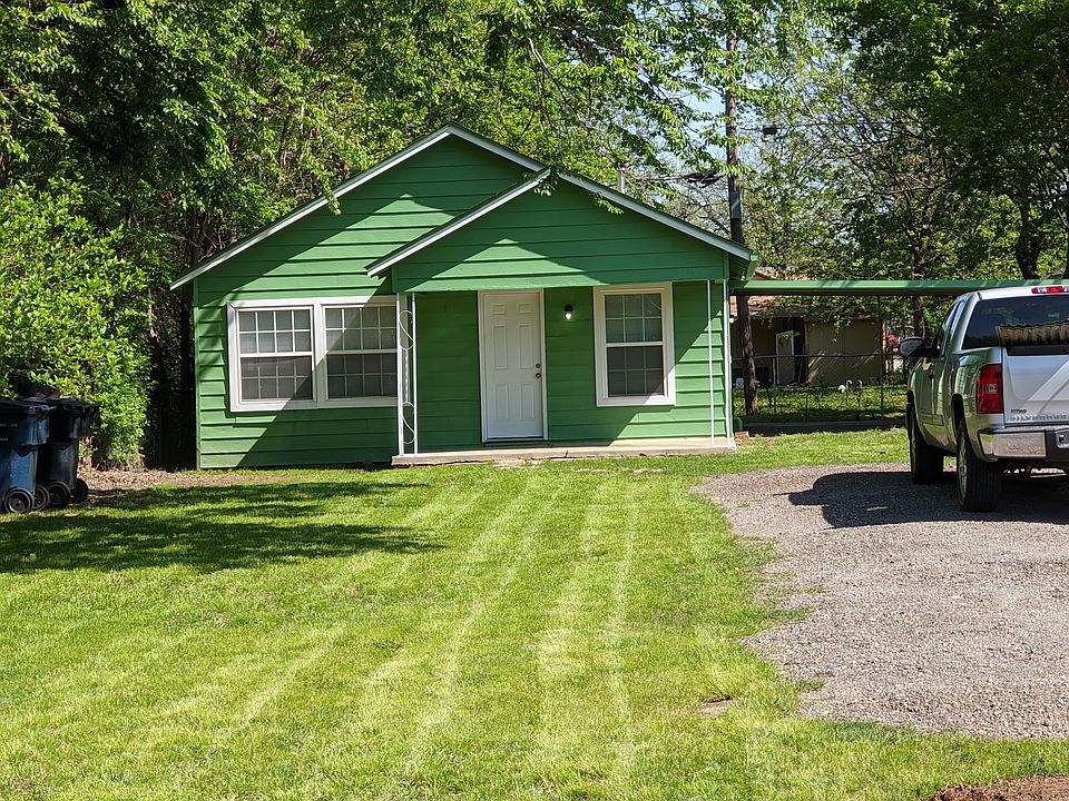 This cozy Airpark bungalow has been totally remodeled. The home sits on the boulevard section of SW 25th. Close to everything including parks, walking/biking trails, schools and Bricktown. Check out all the restaurants of Capital Hill and the Stockyards. Be the first to step into fresh paint and new flooring throughout. Efficient 3 bedroom, 1 bathroom floorplan offers new ceiling fans and new doors. Large, newly remodeled bathroom is equipped with new tub, subway tile shower, new vanity, and all new fixtures. Convenient kitchen includes new gas stove and vent hood, new cabinets, dedicated space for a stackable washer/dryer, new counters, and all new fixtures. Extra-long driveway is great for guest parking and reduces noise from the street. The carport will protect your car from the spring storms and summer heat. Carport could also be used as a covered patio next to the back yard. En Espanol Esta casa ha sido totalmente remodelada. La casa se encuentra la calle SW 25th. Cerca de todo, que incluyen parques, senderos para caminar/ andar en bicicleta, escuelas y Bricktown. Echa un vistazo a todos los restaurantes de Capital Hill y los Stockyards. Se el primero en entrar en pintura fresca y piso nuevo. La casa tiene 3 dormitorios, 1 bano y la casa viene con nuevos abanicos y puertas nuevas. El bano esta completamente remodelado y esta equipado con banera nueva, ducha de azulejos, tocador nuevo, y todos los accesorios nuevos. La cocina tiene una nueva estufa de gas y la campana de ventilacion, nuevos gabinetes, el espacio dedicado para una lavadora/una secadora, y mas nuevos accesorios. El parqueo es grande, es ideal para el estacionamiento de huespedes y reduce el ruido de la calle. La cochera protegera tus carros de las tormentas y del calor. La cochera tambien podria ser utilizada como un patio cubierto al lado del patio trasero. Renter responsible for all utilities and yard upkeep. Landlord would consider maintaining all utilities and yard upkeep for an agreed upon amount. No smoking. Small pets negotiable.