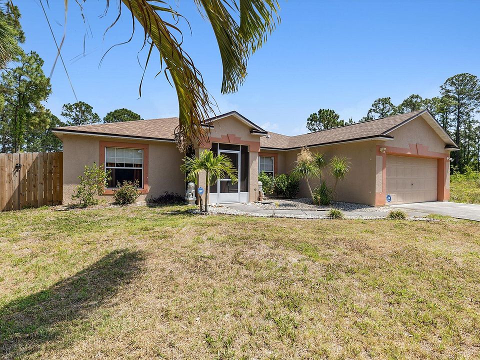 Nestled in the quiet community of SW Palm Bay, this charming home combines comfort and serenity. With a cherished single-owner history, this home boasts a spacious 3-bedroom, 2-bathroom layout that greets you with an inviting split floor plan, creating a bright and open atmosphere. The owner's suite serves as a tranquil sanctuary, complete with an ensuite bathroom and dual closet spaces, ensuring utmost privacy and comfort. On the opposing side of the home, two spacious bedrooms await, providing ample space for family or guests. Within the heart of the home, an open kitchen and breakfast nook overlooks the great room accented by vaulted ceilings creating a seamless flow for both cooking and entertaining. Plus brand New HVAC and ceiling fans in every room, you'll stay cool and comfortable year-round. Freshly adorned with a New Roof, the home invites you to unwind in style whether indoors or on the screened lanai overlooking the fenced in backyard. Step outside to discover your private retreat complete with an above-ground pool for those warm Florida day gatherings. With its prime location and quick access to shopping, entertainment, and dining options this residence epitomizes comfortable living in a peaceful neighborhood setting.