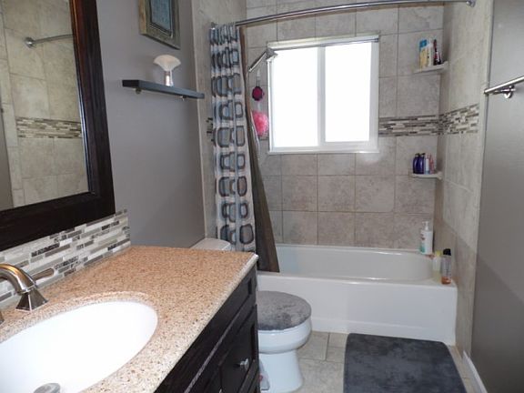 GREAT STARTER HOME, COMPLETELY REMODELED, LARGE LIVING ROOM WITH HARD WOOD FLOORS AND A FIREPLACE, STUNNING KITCHEN WITH RESEEDED LIGHTS, DINING AREA THAT HAS A WALK OUT TO THE PATIO, UPSTAIRS OFFERS 2 BEDROOMS, FULL BATH AND A LAUNDRY ROOM