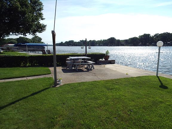 PERFECT FOX RIVERFRONT & CHAIN O''LAKES WATERFRONT GET-AWAY OFFERS INCREDIBLE RIVER VIEWS & EXCELLENT OUTDOOR LIVING SPACE w/CONCRETE PATIO & 25x8 DECK. FAM RM FEATURES 4 SLIDING GLASS DOORS TO DECK. LIV RM w/BUILT-IN BAR & DIN RM OFFER RIVER VIEWS. KIT BOASTS BREAKFAST BAR & ALL APPLIANCES. CONCRETE SEAWALL. NEW ROOF (2009) & FURNACE (2013). PLENTY OF PARKING & SPACE FOR THE TRAILER. 2 CAR SIZE GARAGE HAS 1 CAR DOOR.