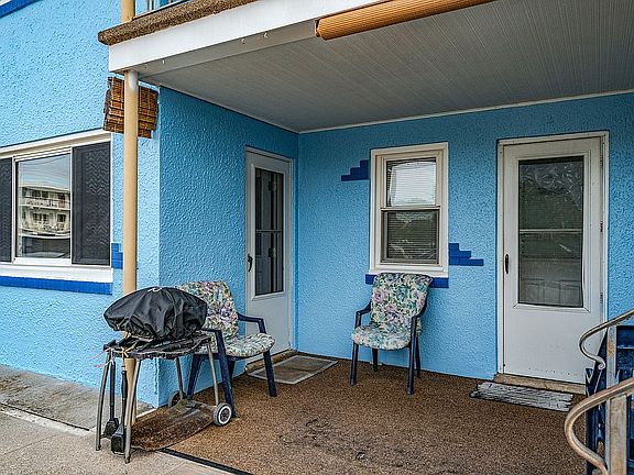 Step into your own charming vacation getaway in desirable North Wildwood! This two bedroom, one bathroom condo is a wonderful find. From the exterior of the Neptune Condominiums, you’ll notice a fresh exterior coat of paint. The bright blue building is just a hint of the cheerful interior that awaits. Enter through the front door of this condo to find a highly functional unit with space for several guests. The open-concept living, dining, and kitchen area is where you’ll find yourself relaxing and enjoying your own beach oasis. The living space features a sectional with a full-sized sofa bed. A 42” television is ceiling mounted in this space as well. Next you’ll discover a space-saving built in dining table followed by the upgraded kitchen. This kitchen features matching appliances, corian counters, a tiled backsplash, beautiful cabinetry, and a ceiling fan. Tile flooring can be found throughout this fully-furnished unit. The first bedroom you’ll encounter features a wall-mounted 32” television, a ceiling fan, a window unit, a queen bed with extra storage, blackout curtains, and a closet. The second bedroom features unique custom built storage that will be perfect for keeping beach essentials. This room also features a full-sized bed along with a desk space. This bedroom is complete with a closet, ceiling fan, window unit air conditioner, and attractive wood plank tile flooring. Last, the hallway bathroom awaits. Featuring a new pedestal sink, a new toilet, and a space saving shower curtain rod. This unit has been freshly repainted throughout. The condo fees are incredibly low for this great find, a perk you’ll appreciate as an owner. A new condo hot water heater has been paid for and will be replaced shortly. You have access to one reserved parking space, plus three owner’s spaces for guest use. There is an outdoor shower area available along with space outside of your unit to enjoy the sea breezes. Located on a quiet street in North Wildwood, this unit is a short two-block walk to the beach. The incredible Wildwood boardwalk is only three blocks from your door as well. This unit is the perfect place for you to envision years of vacation memories. Take a look today! HOA $109/month, Owner allowed pets, Seasonal Occupancy (4/15-10/15), 1 car assigned parking - corner spot on surf and 14th with 3 guest spots available. Ice maker doesn’t work. Bose Sound Bar and personal items excluded from sale.