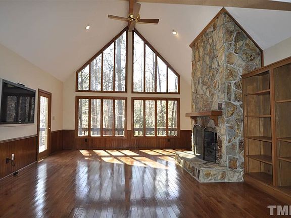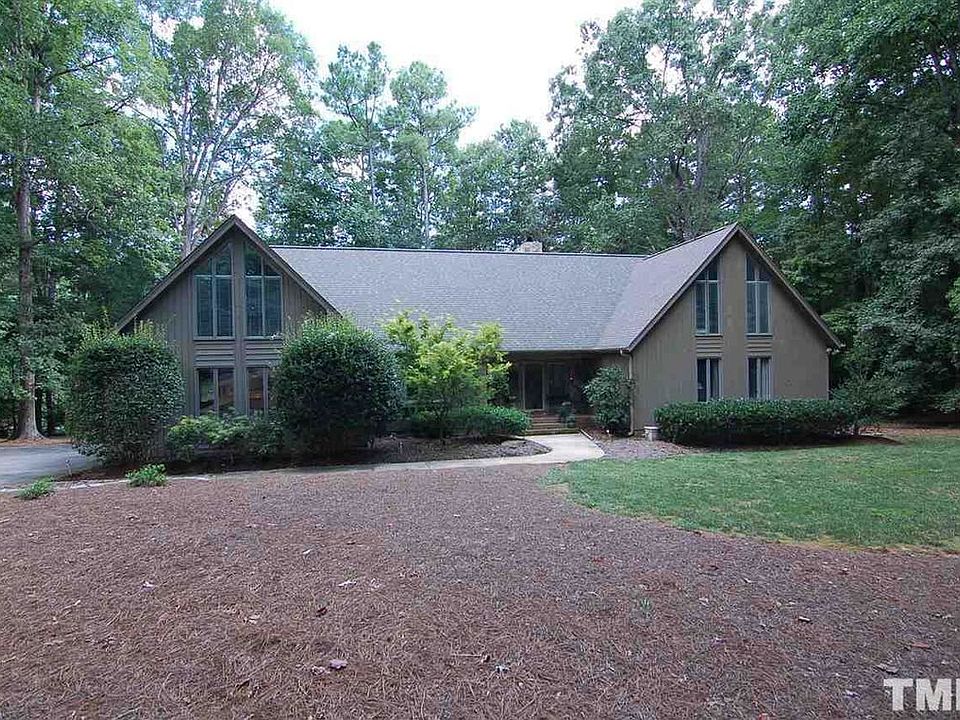 Great N Raleigh home in private wooded lot. Lives like a ranch; master + second bedroom on 1st floor. Two spacious bedrooms upstairs w/full bath. Large walk-in closets. Huge bonus w/separate stairs. Gorgeous living room w/cath. ceilings, stone fireplace & wall of windows overlooking wooded back yard. Master suite with two closets, whirlpool tub & separate shower. Walking distance to pool & tennis. Private deck across back of home. No city taxes!
