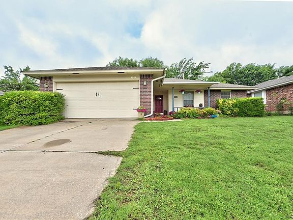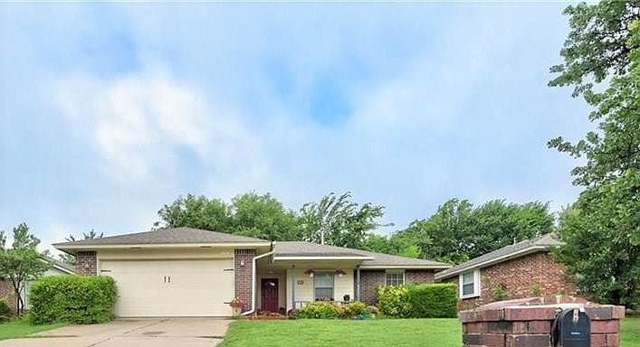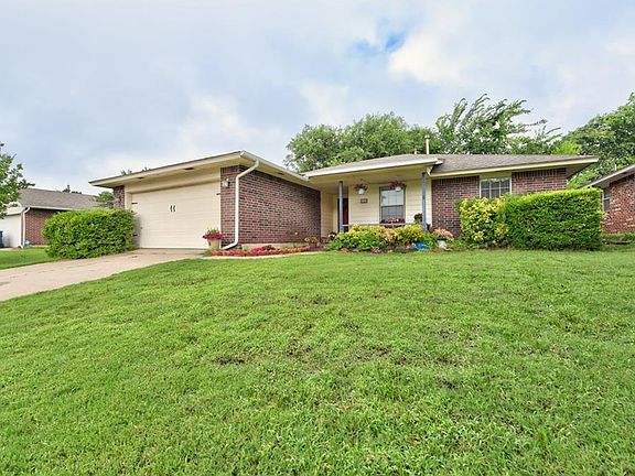 Lots of curb appeal with this landscaped home located in cul-de-sac of quiet neighborhood in Choctaw-Nicoma Park School District! Many updates throughout, including stainless steel appliances and flooring (carpet is brand new). Large living room with plenty of space to entertain includes built-in entertainment center, vaulted ceiling with can lighting over gas fireplace, and electrical outlets on the mantle (perfect for Christmas lights!). Large master bedroom has bay windows and a walk-in closet with built-in shelves and cubbies. Master bath has double sinks and a spa-like soaking tub with shower option. Roomy kitchen includes an eat-in area, bay windows, and white wood cabinets for a bright, clean look. Breakfast bar and separate dining area also included with this home for plenty of seating options. Patio door leads to backyard with mature trees for shade and a fully enclosed privacy fence. Feel safe and secure during storm season with tornado shelter located in garage.