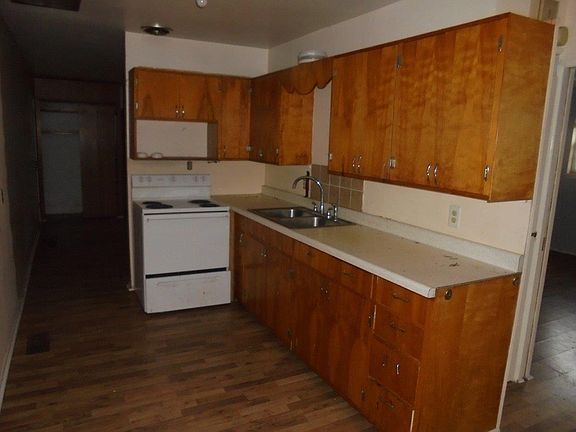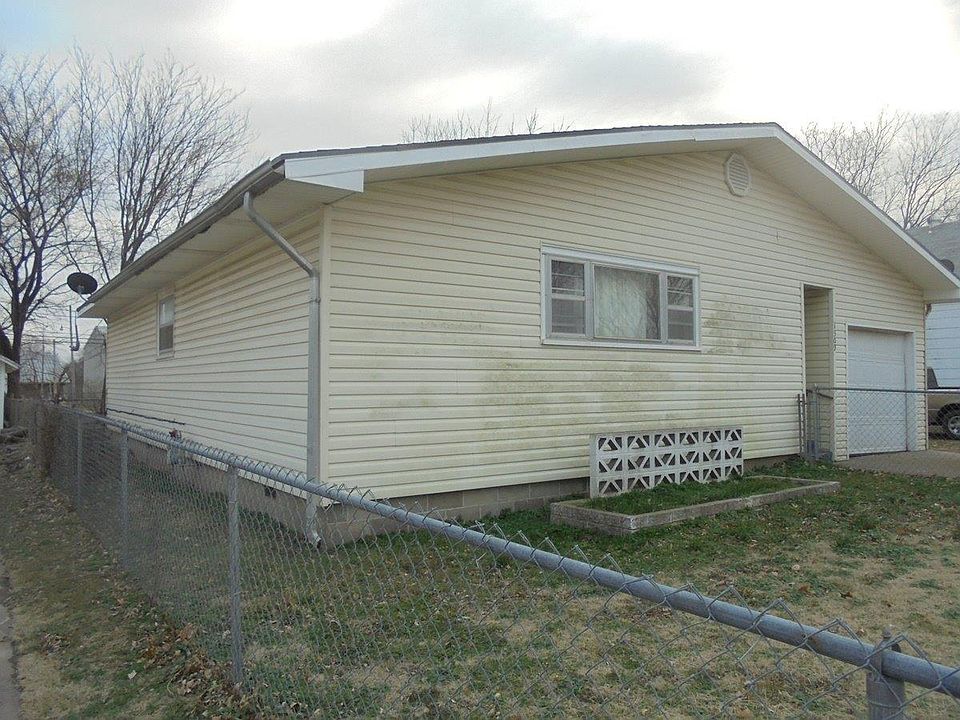 Laminate flooring in most of the with tile in bathroom.Large living room.Galley type kitchen includes washer/dryer area.Larg room at back provide additioanl living area for family room or office with back entrance. Single car attached garage. Chain link fenced yard.