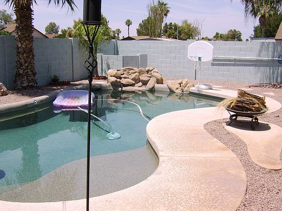 This is a lovely single level home with a beautiful open floor plan and vaulted ceilings. Brand new flooring in guest bedroom and kitchen area, brand new garage door & opener w/5 yr warranty and 5 yr. warranty for termite protection! Enter the large and updated master suite through French doors. The kitchen features a breakfast nook with a bay window. The sparkling play pool is so inviting with a waterfall feature. Come see this beautiful home and all that Chandler has to offer! Items that DO NOT CONVEY WITH HOUSE: CURTAINS IN THE DINING ROOM AND LIVING ROOM AREAS, ALL WALL MOUNTED TVs AND ALL TVs MOUNTING BRACKETS AND HARDWARE.