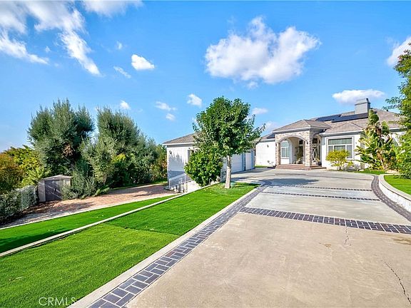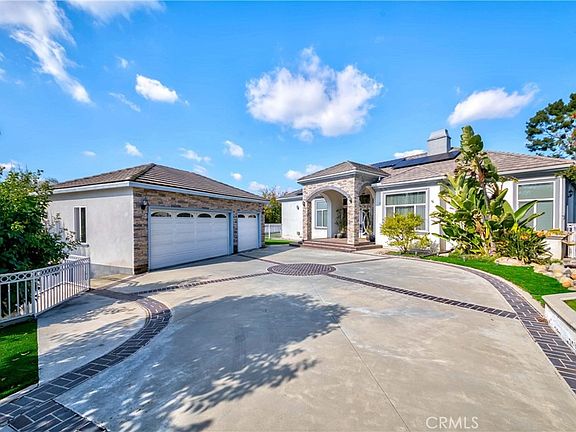 This elegant and luxurious custom single-story home was rebuilt in 2006 and features high ceilings, 5 bedrooms (3 ensuite), and 4.5 bathrooms in 3,952 s.f. of living space. Grand double doors open to reveal marble tile floors in the spacious entrance, while luxurious hardwood floors in the bedroom, living room, and family room. The living room, with its fireplace, high ceilings, bright interior and custom curtains, doubles as a dining room. The spacious main suite features high ceilings, luxurious hardwood floors, and elegant curtains to create a romantic atmosphere. The primary bathroom features designer-selected marble floors, a bathtub, and a separate shower. The art museum-like living room has a high ceiling, a fireplace, and a glass door leading directly to the cottage yard, creating a brighter and more cozy atmosphere. Two en-suite rooms can be used as guest rooms, secondary suites or offices. The spacious, gourmet kitchen features custom cabinets, granite counters, backsplash, built-in appliances, large center island, pantry, and dining area where you can enjoy your meals with tree views. There is a separate 3 car garage for additional parking and a long driveway. A private swimming pool, tennis court and lots of trees make for a very private and peaceful life.