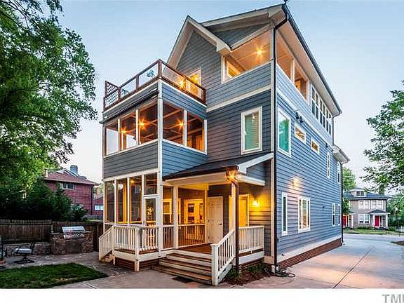 Custom built home in the Mordecai neighborhood. This house has the finest details including professional chef kitchen, specialty hardwood floors, rear patio with outside fireplace & grill, roof top garden, skyline balcony, garage, yoga/exercise room. Spray foam installation & reclaimed rain water makes this house very efficient. All within walking distance to downtown, shops & food