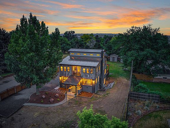 Nestled on huge lot w/enviable outdoor space, completely reimagined masterpiece is an entertainer's dream w/ultra-high-end finishes & exquisite design. You'll be WOW'd by the modern farmhouse charm immediately upon arrival. Enter to charming mud/sunroom w/porch swing. Open floor plan guides you to a comfortable living room, dining, & kitchen. Chef's kitchen is outfitted w/premium appliances, quartz counters, & rustic reclaimed wood butcher block island. Upstairs soaring ceilings & numerous windows create abundance of natural light & open flow. You'll love the bonus loft space. Primary suite highlighted by private balcony, lake views, & luxe 5 piece bath. Two secondary rooms adjoined by Jack & Jill bath. Daylight lower level features wet bar, reading nook, rec room & 2 add'l bedrooms. Home boasts 2 office spaces, covered back porch & tremendous backyard w/3 sheds. Convenient access to all the shopping, dining, & recreation Loveland has to offer including numerous lakes & reservoirs.