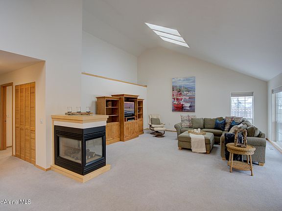 Great opportunity to own this 3 bedroom, 2 bathroom condo in the desirable Westwood waterfront neighborhood. This neighborhood rests along the shores of the Pend Oreille River with a community beach, marina, clubhouse, heated in-ground pool & kid pool, tennis/pickle ball/ basketball court, community fire pit and a large grassy common area. Walk into a cozy single level condo with an open living room, 2 sided gas fireplace, and skylights allowing natural light in. The dining room is open to the kitchen that has a large breakfast bar, ample storage and pantry. Spacious master bedroom with vaulted ceilings, his/her closets, en-suite bathroom, and sliders allowing access to the deck. Take advantage of the 2 car attached garage with access into the home.