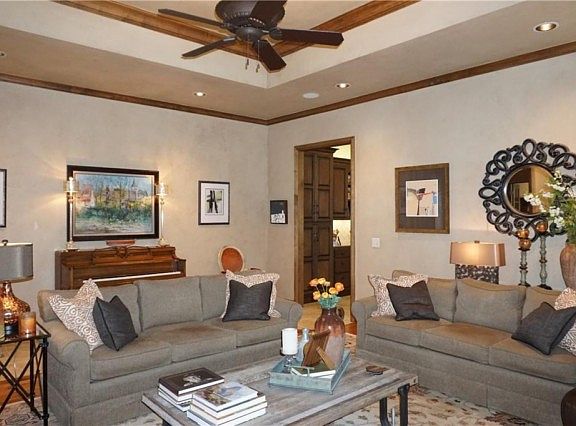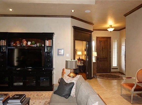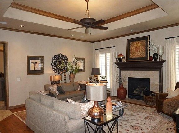 UPGRADED WHERE IT COUNTS! Plantation shutters throughout entire home, in-ground storm shelter, Nest learning thermostat system. See Additional Features in Supplements. Split-plan w/master suite, guest suite & huge suite up for many purposes.. Everything you want in luxury, location, easy maintenance. Granite in kitchen, baths & large utility room. Gourmet kitchen w/stainless Jenn-Air, Bosch & KitchenAid appliances. Large island/breakfast bar. Built-in granite hutch & home managers station off kitchen. Large master suite w/beautiful twin granite vanities, very generous shower, jetted tub. Great closet w/ built-in bureau & custom shelving. Second bedroom suite is spacious w/granite vanity, fully tiled shower/tub & walk-in closet. Upstairs grandkids retreat suite is huge! Mature, professional landscaping in beautiful cul de sac neighborhood. HOA COVERS ALL LAWN MOWING! Buyer Note: Stainless double door refrigerator, premium washer/dryer & wall mounted TVs included in purchase.