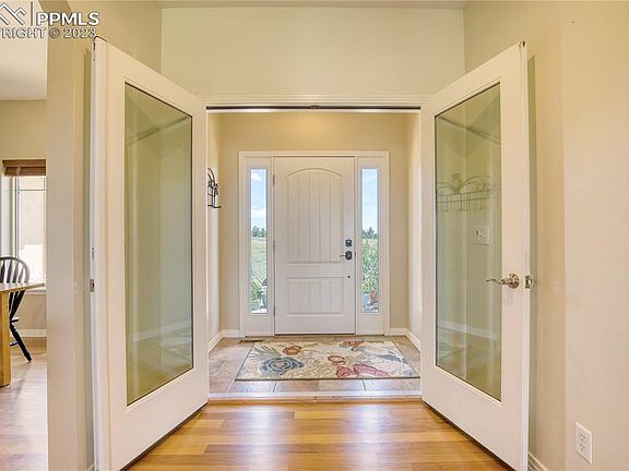 *** Wow! *** 5 Fully Fenced Acres in Black Forest with NO HOA! *** Immaculate Condition *** 5 Bedrooms + Office *** Kitchen features Quartz Countertops, Gas Range, and Bosch Kitchen Appliances *** 2nd Master Suite in Basement *** Huge 3.5 Car Garage including 220v, Hot/Cold Water, and 8' Insulated Garage Doors *** New Composite Deck in 2021 with Pikes Peak Views *** Site-Finished Hardwood Floors *** New Roof in 2017 *** Stucco & Stone Exterior *** Large Chicken Coop w Timed Open/Close *** Walkout Basement Includes 9' Ceilings, Wet Bar, Theater Room, and Dedicated Storage Room (not pictured) *** Well Permit Allows for Watering Animals and 1 Acre of Irrigation *** Don't Miss This One! ***