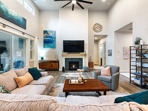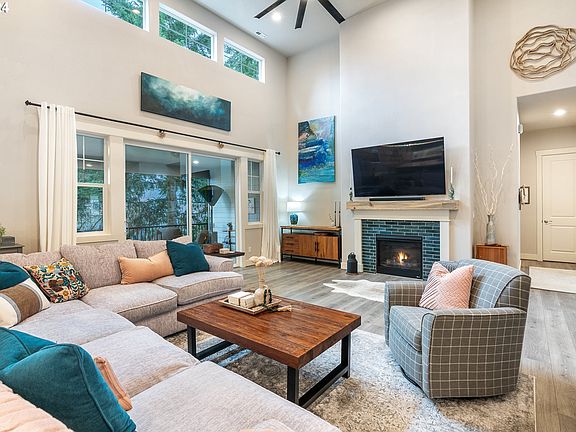 • Features: Ceiling Fan, Fireplace, Sliding Doors, High Ceilings, Laminate Flooring