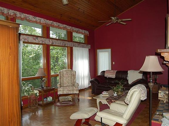 Home tucked away in trees. Metal roof is a couple years old. Beautiful hardwood floors throughout, Could be a six bedroom home. 40 X 60 pole barn w/garage door opener.