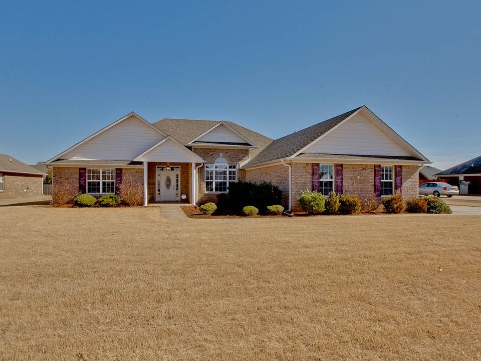 Welcome Home! Move in ready full brick rancher with 3 car garage and storm shelter. This home offers 4 bedrooms, 2 bathrooms, formal dinning, open great room with gas log fireplace, hardwood floors, crown molding, freshly painted throughout, breakfast room and Kitchen with tile and stainless steel appliances, new carpet in isolated master bedroom, glamour bath with double vanities, tub and separate shower with huge walk in closet, good size laundry room, and plenty of backyard space for the kids and pets. Convenient to Madison and Athens. Call for your private showing today! (new carpets are ordered and will be replaced before closing)
