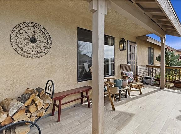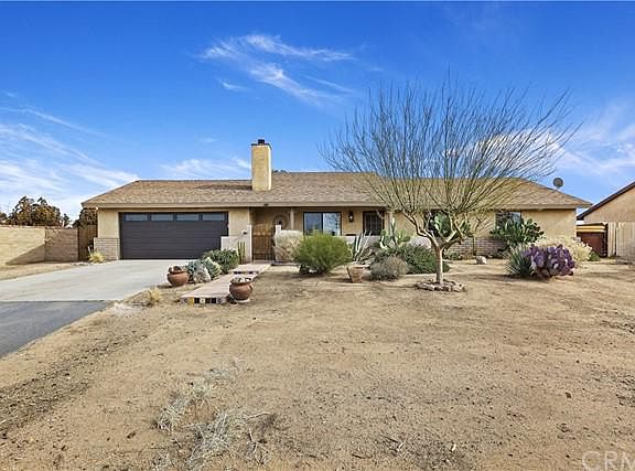 Beautiful, updated home with tons of curb appeal and a view! This gorgeous home has updated laminate wood, tile, doors, trim, fixtures, and so much more! The front yard is beautifully landscaped with well established desert landscaping and drip irrigation and accented by a gorgeous saltillo paver walkway leading to the 250 sqft covered courtyard patio. The house features central heating and air, as well as an evaporative cooler and a high efficiency Timberwolf wood burning insert. The living room has vaulted ceilings and opens to the eat-in kitchen. The beautiful, bright kitchen features quartz countertops, a 12 bottle wine fridge, and plenty of cabinets. All bedrooms offer large closets and ceiling fans. The relaxing master bedroom offers vaulted ceilings, a walk in closet, and an updated en suite. The large backyard is sure to impress with incredible desert and mountain views while you enjoy the spacious patio. The darling, fenced garden is the perfect size to grow a summer garden and the young fruit trees are beginning to produce. The 10 ft gates on both front and rear of the property gives access for RV and off-road toys with water and power ready on the side of the house. The property is zoned for horses, chickens, and other animals. This beautiful home is completely ready to move in and enjoy!