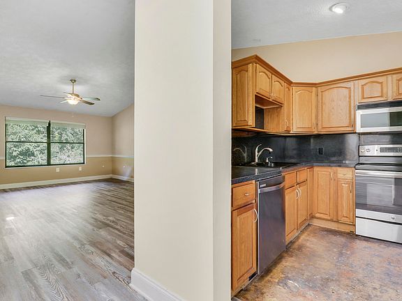 Screened-in porchOpen layoutHandy front-porch storage closetVaulted ceilingsConvenience of in-unit laundryStainless steel appliancesRelaxing wooded backdrop