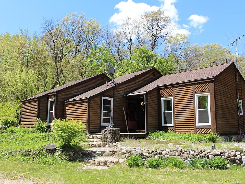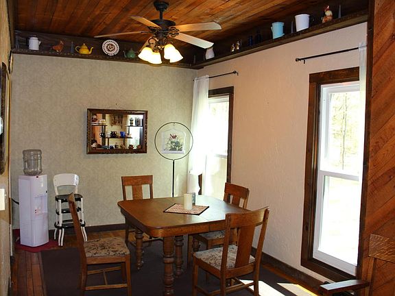 Rustic ranch set in the middle of 6.1 acres of privacy, piece and plenty of quiet. The decor is rough sawn wood over drywall. The large Master bedroom has two skylights and a sunken whirlpool tub with two skylights. The large living area has a fireplace and slider to three season room overlooking a fenced back yard. The home has had plenty of new items installed in the past few years. Newer items include forced air propane furnace with add on wood burner(five years ago). Newer windows(2 yea rs), new roof(ten years-architectural), new water heater, chimney tuck point, chimney liner, softner, bedroom slider and blown in insulation.