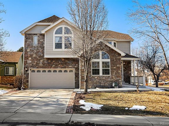 Home-sweet-home is waiting for you with this beautiful Hunter's Glen residence located on a prime corner lot. This freshly-painted home greets you with a charming front porch that opens to an open and functional floor plan. The elegant foyer welcomes you upon entry and opens to a flowing, open floor plan with formal dining room and dedicated office with beautiful floor-to-ceiling built-in bookshelves and cabinets. The fully-appointed kitchen features plenty of honey wood cabinetry, lots of countertops space and center island to make meal prep a breeze, and a spacious breakfast nook. The kitchen flows effortlessly into the family room with warm carpets and a cozy fireplace, making this a great area to entertain. Journey upstairs to find the home's four spacious bedrooms, including two with a dual-sinks Jack-n-Jill bath, and a luxurious master retreat, complete with vaulted ceilings and a spa-like 5-piece en-suite bath. The completed basement's versatile space includes two additional recreation rooms, non-conforming bedroom and full bathroom. New updates include a fresh exterior paint, newer roof, AC/HVAC, water heater, water softener, garage door, and concrete front porch and walkway. With a 5-6 minute walk to the local elementary and middle schools and Thornton Golf Course out your front door, this well-maintained residence is completely move-in ready. Buyer/Buyer's agent is responsible for verifying all information, measurements, schools and HOA information.