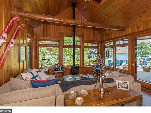 Retreat to this 5 bedroom 5 bath lake home with 227 ft of excellent sand frontage and 200 ft bay frontage on Cross Lake. This 4,740 sq ft home has fine amenities and an Up-North feel. Lakeside guest house offers additional room for guests. Gather with family or friends on the lakeside patio or around the lakeside fire pit while taking in stunning lake views. The attached 3 plus stall garage and detached 2 stall garage for storage. Play for fun or competition on your own private tennis court.