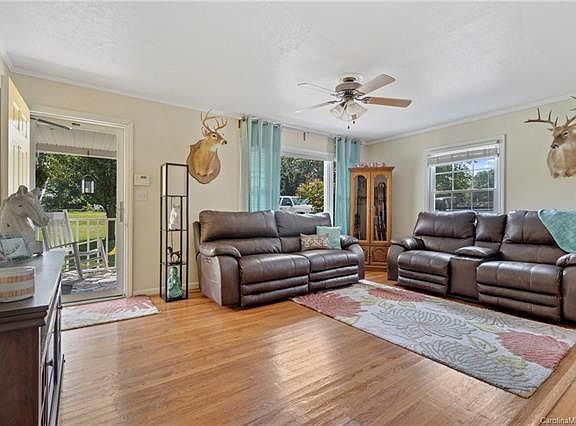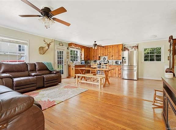 Cute country home with lots of recent updates and open floorplan on one acre property! The kitchen features laminate floors, pine cabinets, stainless steel appliances and granite counters. Hardwood floors throughout the remainder of the house. 2 inch blinds. Three nicely sized bedrooms and bathroom. Exterior storage buildings, chicken coup, dog pen, and swingset.