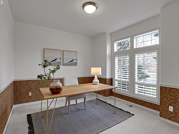 Great Room Floorplan w/Southern Exposure & Primary Suite on Main. 2,678 Sq Ft, 4BD+Den or 3BD+Den+Bonus. Kitchen w/Island,Pantry & Hardwood Floors opens to Great Room w/Vaulted ceiling, Gas FP & Built-Ins. Primary Suite features Soaking Tub, Walk-In Closet & Slider to Backyard. Formal Dining Room & Den. Bonus Room/4BD w/Closet & Storage. Fully Fenced Level Yard w/Aggregate Patio backs to Quiet Greenspace. New Exterior Paint. Close to Cedar Mill Shops, High-Tech & Nike. Excellent Schools!