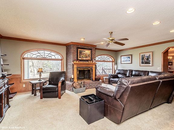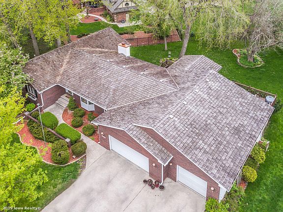 Located in "The Woodlands" an upscale neighborhood in low tax Clive Iowa. Set on a private wooded one-half acre lot, is this brick front walk-out ranch, with 4 BRs (3 BRs on the main floor, 3 baths, with 2,865 SF up & 1,423 SF in the walk-out. The first floor has a formal living room, formal dining room, family room with brick wood burning fireplace, kitchen with island and eating bar, double oven and wood floors; screen porch with knotty pine vaulted ceiling; master bedroom with walk-in closet, 2 sinks, whirlpool tub and separate shower. The walk-out level has a fourth bedroom, 2nd family room and rec room walk-behind wet bar and ¾ bath. Selling at a low $157/sq ft, based on the main floor only.