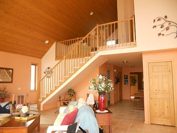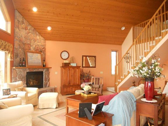 Gorgeous home on a large level lot w/95' of sandy shoreline! Enjoy the great room w/vaulted wood ceiling, patio doors to cedar deck and open loft area. Large rec room over garage. Includes large (106x297) partially wooded backlot!
