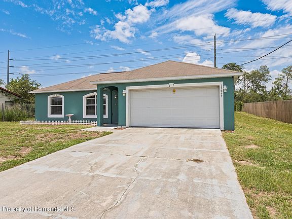 Under contract accepting backups. Cute as a button and close to all the amenities you could ask for? Bet! This Spring Hill gem would make a fantastic starter home or investment opportunity. It boasts high vaulted ceilings, newer tile flooring in the living room, and a floor plan with a lot of flexibility. Dedicated living and dining areas make entertaining convenient; you could also explore the possibilities of opening them up to create a spacious great room. There's even a bonus room that would be a great spot for your home office, a craft room, playroom, home gym, or a 4th bedroom. The kitchen is bright and cheerful, with pendant lighting, wood cabinets, a breakfast bar, and a large pantry with folding doors. Sunlight streams in gently through the French doors in the eating nook, offering gentle illumination while you're nibbling a bagel or sipping sweet tea. The split-bedroom floor plan means that the primary bedroom becomes your private retreat after a long day. It's spacious with a large walk-in closet, and an ensuite bathroom with a step-in shower. The two guest bedrooms are also quite sizable with plenty of closet space. They share a guest bathroom with a newer vanity and a tiled tub/shower combo. Laundry in a hot garage? Never again with a dedicated laundry closet indoors. There is a small concrete pad just outside the French doors leading out back; you could park your barbecue there and grill up a feast for your next summertime get-together. Little ones and pets will enjoy playing in the huge, partially fenced backyard. There's tons of room to install your dream pool! And if there's not enough space in the two-car garage for your storage needs, you'll find a shed out back, too. You'll have no HOA fees or restrictions to deal with in this neighborhood. You're only minutes away from tons of shopping and dining options in the plazas at Mariner Boulevard and SR-50. Locally owned favorites include Pueblo Viejo Mexican Restaurant, PhoEver Asian Cuisine, Greek City Cafe, Chicken Salad Chick, and fine dining powerhouse, Prime 88. Schools, the West Hernando Branch of the library, Oak Hill Hospital, and even Weeki Wachee Springs State Park with its water slides and famous mermaid shows all fall within a five-mile radius. You're close to both US-19 and an entrance to the Suncoast Parkway for easy access to Homosassa, Tarpon Springs, Clearwater, St Petersburg, and Tampa. What are you waiting for? Get in to see this home before it's gone!