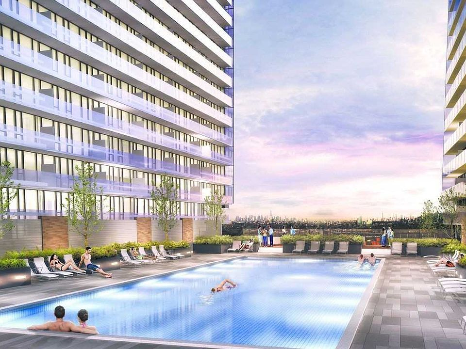 This south-facing one-bedroom unit with Glass window from ceiling to floor is located at Sky View Center, multi-level retail space, housing popular retailers including a new Nordstrom Rack, Target, Bed, Bath & Beyond, Best Buy, Nike, Forever 21, Grandma's Dim Sum, Hot Pot, BJ's, Wholesale Club and Sky Foods and Asian supermarket - four-acre landscaped rooftop garden equipped with first-class amenities and a new rooftop swimming pool