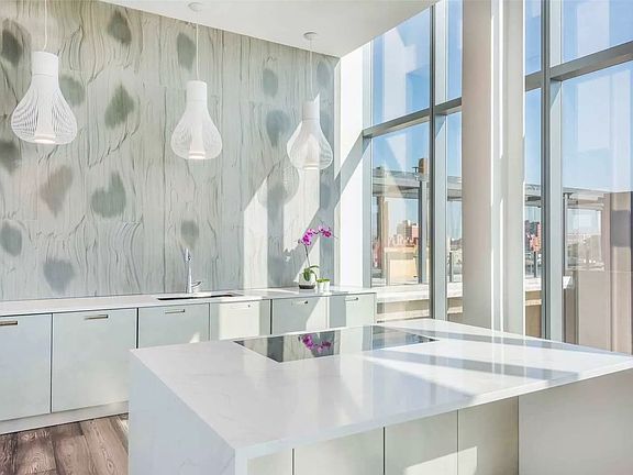 This south facing one bedroom apartment located in Grand one building at Sky View Parc features 9' high ceiling, a den, huge balcony, oak wood floor, double walking closet, Bosche washer/dryer. U-shaped gourmet kitchen, built-in refrigerator/freezer/dishwasher, natural quartz stone countertop, and double glazed insulated windows. The complex equipped 24 staff lobby & concierge, state of the art health club, sauna, spa, tennis courts, basketball courts, swimming pool, children playground & children play room, outdoor BBQ, Dog run, 4-acre rooftop garden, private residential valet parking. Walking distance to #7 train on main street, LIRR, major banks, restaurants, supermarkets, and etc.