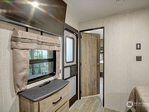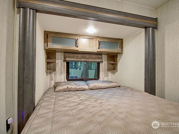 Located on a comfortably shady lot, this beautiful 2021 trailer is the perfect home away from home. A large covered deck greets you as you approach. Inside, you'll find the trailer to be bright, airy, and well-maintained. Sleek finishes and lots of storage space are bonuses. Most unique however, is the two bedrooms, two bathrooms - definitely a rare find in The Glen! Also included on the property is a shed for additional or larger storage. The Glen is zoned recreational for 120 days of use out of the year and has all the amenities you could want, including 2 pools, hot tub, tennis court, library, laundry mat, 2 clubhouse, 24 hr security, gated entry, & play areas.