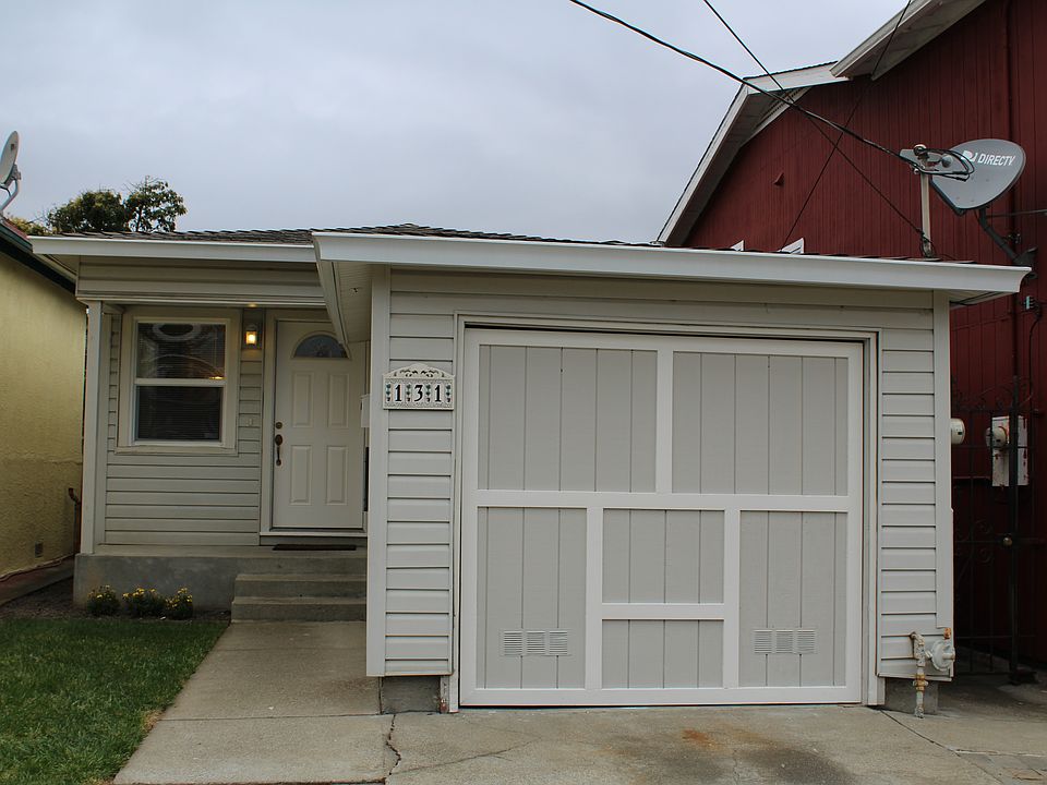The perfect SF commuter home! 2 blocks south of BART and 2 mile drive to new Richmond Ferry! Full renovated turn key ready to move in! Has driveway for 2 small cars and 1 car garage in front with remote garage door & interior access to kitchen. Laundry washer/dryer in garage. Front door opens to spacious living room w/ kitchen directly adjacent. Kitchen has stone countertops w/ bar seating, great for entertaining. Gas range/oven w/ roof venting & all the appliances & newer style kitchen cabinets are all you need to start living immediately. Kitchen has a side access door to the front and back yard. Hallway bathroom fully renovated with a glass shower door to shower/tub & new vanity. Has hallway linen closet just before two bedrooms in the rear of the home. Larger bedroom has a sliding glass door to rear deck perfect for entertaining. Back yard area has long lawn with navel orange, pomegranate, & fig trees. New sod grass front and back lawn has timed irrigation system. Gated w/ security
