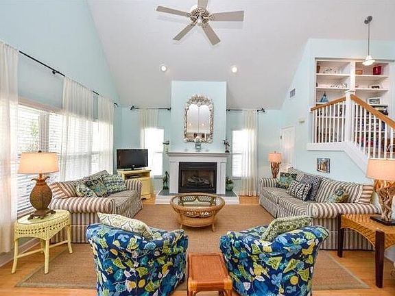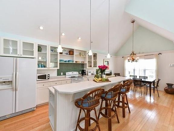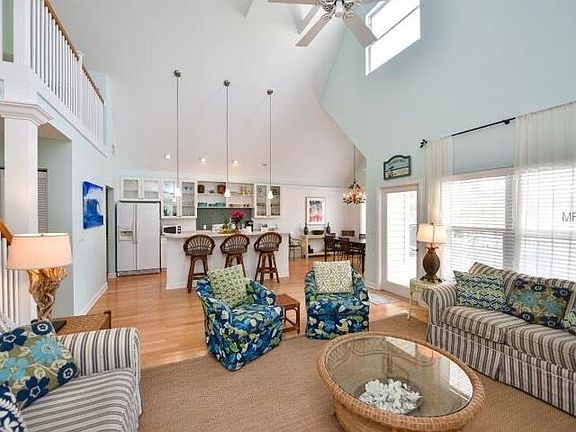 Exceptional 3 bedroom, 3 bath home located just one block to the beach in Holmes Beach. Located west of the main road with no streets to cross to get to the beautiful, white sandy beaches of Anna Maria Island. Open floor plan and cathedral ceiling in the great room make this property bright and airy. Two bedrooms on the main floor, 3rd spacious bedroom on top floor. (Two bedrooms offer ensuite baths.) Large, open deck off of main living area to enjoy your morning coffee in a serene setting. Additional, generously sized, covered, shady pool side patio. Beautiful, tropically landscaped, fenced yard and a great, heated pool. Gas fireplace & propane grill in lower patio hooked to same, large tank. Two car garage with a separate workshop/storage room. Currently in a vacation rental program.