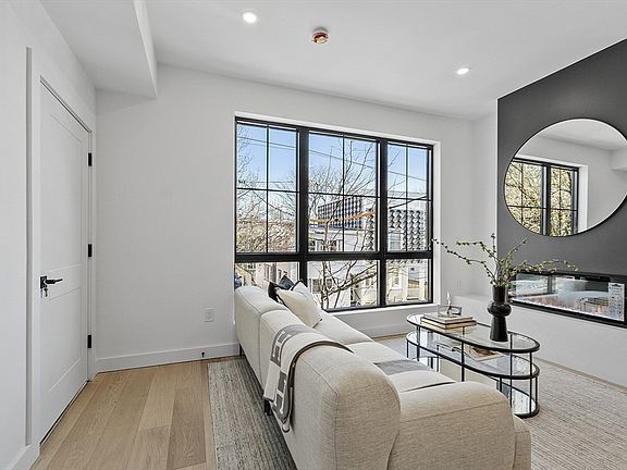 2-BR, 2-bath urbanite's retreat! A space that boasts over 9ft ceiling height, clad in warm wood tones and literal sunshine that pours in through gigantic windows. A fireplace insert on an accent wall that provides a visually striking entrance. White oak wide-plank hardwood floors throughout that enhance the open layout of the unit. The kitchen is a blend of form and function: equipped with Bosch appliances and a quartz island large enough to seat 5! In-unit laundry, a utility closet that doubles up as storage space, and a walk-in closet as a flex space to serve as a pantry or more storage. High-end Pella Impervia line of windows throughout. Energy efficient features include closed cell foam insulation throughout, on-demand tankless hot water heater, and high-efficiency electric heat pump. Nestled in a micro-neighborhood that features a number of new construction properties! Cambridge residents may park at the First St. Garage for $100/mth May-Nov, $50/mth Dec-Apr.