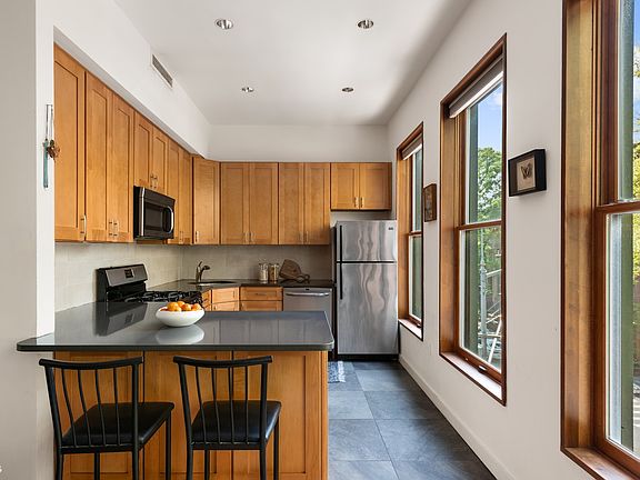 Indulge in unparalleled luxury living with this exquisite 2-bedroom, 2-bathroom residence nestled in the heart of Park Slope. Meticulously designed with high-end finishes and panoramic views, this is urban living at its finest. Step into the expansive living, dining, and kitchen combination, featuring a gourmet kitchen outfitted with top-of-the-line stainless steel appliances including a sleek microwave and dishwasher. The oversized wall of windows bathes the space in natural light, highlighting the sophisticated hardwood floors that flow seamlessly throughout. Abundant closet space provides ample storage, while a washer and dryer discreetly tucked away within the unit offer ultimate convenience. Stay cool in the summer and cozy in the winter with central AC and heat, complemented by energy-efficient double-pane windows. The tank-less boiler system ensures you never run out of hot water, enhancing the everyday luxury of this remarkable home. Step outside onto your private roof deck and savor breathtaking views of the city skyline - a perfect setting for entertaining or unwinding in style. Ideal for commuters, the B & Q trains at 7th Avenue and 2, 3 trains at Bergen street offer ultimate convenience. In addition, the 2, 3, 4, 5, B, D, N, Q, and R trains are a short distance away at Barclays Center, offering seamless city access. This is not just a home; it's a statement of refined living. Experience the pinnacle of urban sophistication. Arrange a private showing today and elevate your lifestyle with this extraordinary residence. This unit is pet-friendly. Cats and dogs allowed.