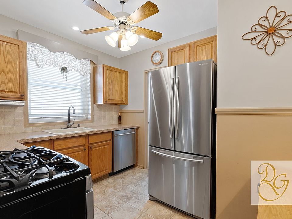 Welcome to this South facing, bright and sunny 2-bedroom coop situated on a quiet dead-end block. As you enter through the foyer, you will be greeted with 4 closets providing for abundant essential space for all your storage needs leading to an open layout featuring a dining area the leads into your living room space where you could enjoy some of the most breathtaking scenic sunsets that will completely amaze you. The updated windowed kitchen, features an oak ceiling fan with light, is equipped with tiled backsplash and floors, offers abundant oak cabinetry and stainless-steel appliances, including a built-in microwave and dishwasher, stove, and refrigerator, which provides for adequate storage for all your cooking essentials and meal preparation. Kitchen offers a pass-through window nicely accented with hanging light fixtures offering a granite topped island equipped with 2 stools. Primary bedroom features wall-to-wall mirrored door closets offering abundant storage, features a ceiling fan light and is spacious enough to easily accommodate King-sized bedroom furniture. Second bedroom, equipped with its own closet, features a ceiling fan light and has adjacent windows allowing for great light and airflow. Beautiful hardwood flooring throughout. Updated crisp, white and grey tiled, windowed bathroom completes this perfect living space.