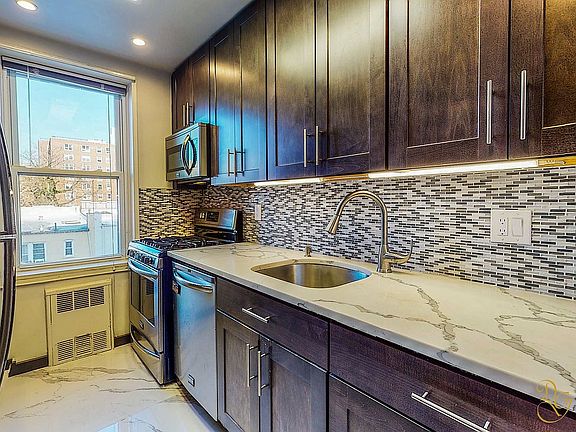 Situated on a quiet dead-end block, this tastefully renovated, spacious, one bedroom coop is in move-in condition. Conveniently situated in the foyer of this unit is a closet that comfortably accommodates your outerwear. Recently renovated, the windowed kitchen features quartz countertops and stainless-steel appliances with travertine stone backsplash, accented with under-cabinet lighting. Wine rack, microwave, dishwasher, and abundant cabinetry offers you all the conveniences needed for meal preparation. Primary bedroom offering a sizeable wardrobe closet, is also spacious enough to accommodate large furniture, including a king size bed.