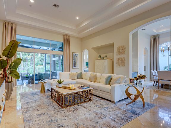 This exquisite 3-bedroom, 3.5-bathroom home with additional office space, possible 4th bedroom, boasts a pristine heated pool/spa & a large covered lanai with breathtaking views of the 5th fairway. This property offers a NEW ROOF and an exceptional living experience with a multitude of amenities & a upscale living clubhouse. This property truly blends indoor & outdoor spaces,& provides the perfect setting for a life of comfort .The foyer exudes a sense of grandeur and prestige,& the expansive living spaces are light & bright with the finest finishes and fixtures, including marble & wood flooring, & soaring ceilings creating an ambiance of timeless beauty and grace. The kitchen featuring custom cabinetry & a spacious island perfect for entertaining guests. The master suite is a sanctuary of tranquility with a spa-like bathroom,walk-in closets,and a door opening to the lush surroundings.This estate is truly a masterpiece of luxury living,offering the ultimate in comfort,style,& sophistication.