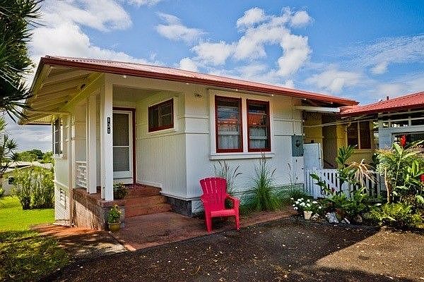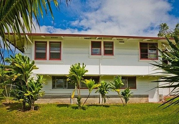 You will find the best of the old and new in this charming and updated 3 bedroom / 2 bath 1950's kama`aina home. It looks out to the ocean and is set on the rise atop a half-acre lot. The windows are old style, big and sparkling; the kitchen is huge, the appliances new, the remodel done in white and black tile in keeping with the 1950's. Special features of the home include a walk-in pantry, a dining area with a view, and a large tiled outdoor shower where the furo used to be.The fir floors in the living room, kitchen and hall are newly refinished. The home's exterior has been professionally scraped, caulked, primed and brush painted to last a lifetime. All new copper plumbing and updated electrical with new box have been installed. And, there is a separate living area downstairs, with two exterior entrances, a walk-around from the upstairs main entry as well as concrete stairs to an entry door with rare Hilo star glass. This is the perfect mother-in-law unit, with a third bathroom (permitted), a wet bar, and a light, airy and inviting lower level living space.