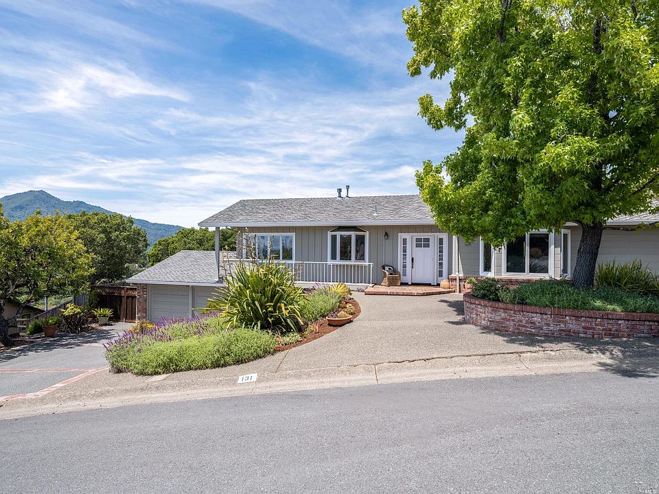Wonderful 3BD/2BA home with beautiful refinished hardwood floors throughout the main living area and bedrooms. Updated kitchen has lots of counter space, Kitchen Aid stainless appliances, breakfast bar, and views to the east bay. Great room has high ceilings, fireplace w/insert, and fantastic sunset views of Mt Tam and the Ross Valley. Both BAs are recently remodeled - primary BA has new stone counters and a huge shower. Separate office on lower level with laundry and huge storage area. View deck is perfect for al fresco dining, and lower level has deck and patio outdoor spaces. Large 2-car garage with full workbench, cabinets, and closet for additional storage. Easy low-maintenance landscaping with irrigation. Extensive EQ retrofit/shearwall work completed in the last 2 years. Great schools and easy access to 101! Come see!
