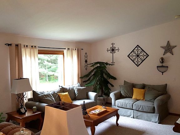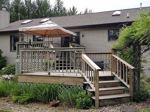 GORGEOUS 3Bed/2Bath Ranch split floor plan 35 wooded acres, near HWY 39/51 Plainfield Exit. Custom Strafford built home w/great open floor plan. Very useable space w/both living room & family room on main floor. Double deck off dining area leads to your 35 acres of solitude. Extra Garage. Kitchen is bright and airy with mud/laundy room off garage for easy living. Basement has poured concrete walls and lots of closets to store your stuff. Beautiful yard just enjoy.