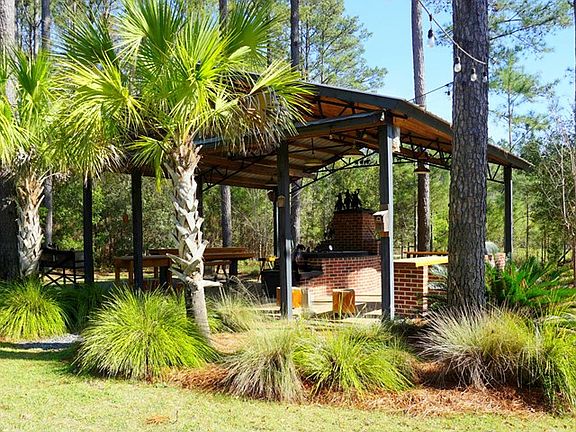 Outdoor living at its best. Cute bungalow with three outbuildings that make up this incredible compound. Two story house, cook house with dining room, bathroom, and bar. Outdoor cooking shed designed as entertainment center. Wood shed with storage. Professionally landscaped. Professional kitchen. Secluded location just north of the FL/GA line.