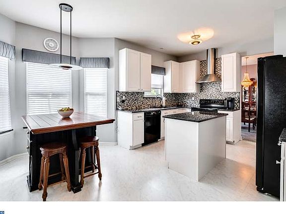 Beautifully upgraded stucco contemporary ready for move in. Enter the soaring 2 story foyer, formal living room and dining room, beautifully appointed kitchen with state of the art appliance, granite counters, island, pantry and breakfast area. Spacious family room leads to beautifully landscaped patio and yard. The master bedroom suite boasts vaulted ceilings walk-in closet and private spa bath with double sided fireplace to bedroom and bath; plus 3 more very spacious bedrooms. Best of all, enjoy entertaining in the lower level finished basement with custom bar and movie center. Lots of storage, convenient to shopping, restaurants and major highways, minutes to Philadelphia. Additional features: Basement - crown molding throughout, theater room with Sony high definition projector and 100" electric retractable screen with 8 speaker surround sound. Dimmable recessed lighting, dual sump pump,w/battery back up, custom wet bar with granite counter and mosaic glass tile work, newer roof (6 year), new wall to wall carpeting (1 year), New NJ energy star compliant Rheem hybrid HVAC system with new attice installation to support energy efficiency.