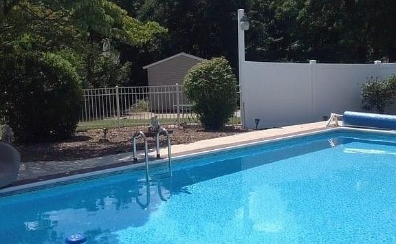 Pristine private ranch style home surrounded by woods. 4 Car Garage! Entertain guests with a great deck/patio space that surrounds an in-ground pool that is heated by FREE GAS that supplies house! All season room off master bedroom that looks out to nature and the in-ground pool. Updated kitchen with SS appliances. AC/Furnace, Roof and siding updated within last 5 years. Basement remodeled 10 years ago with 2 bedrooms, a full bathroom with Jacuzzi tub and family room with a stone fireplace - Tall ceilings. 20k Generic back-up generator powered by free gas. Pool has updated liner, winter cover, solar cover and slide. Multiple out buildings include a 10x10 shed and 24x24 Barn that could be used for horses or equipment. Beautiful property with endless possibilities! 1/4 mile paved driveway. Sale includes two separately deeded parcels totaling 40+ acres. All pieces of furniture are included in sale. Public water is available!